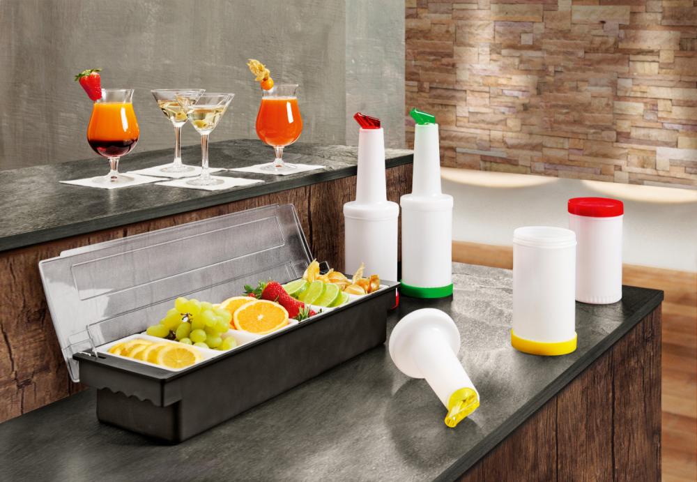 Od PE plastike zapremine 0,88 l, u raznim bojama i kompletno sa sipačem (pourer), koji ima otvor za vazduh koji garantuje sigurno sipanje.