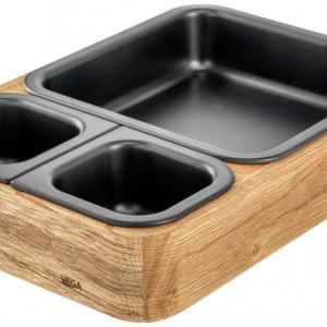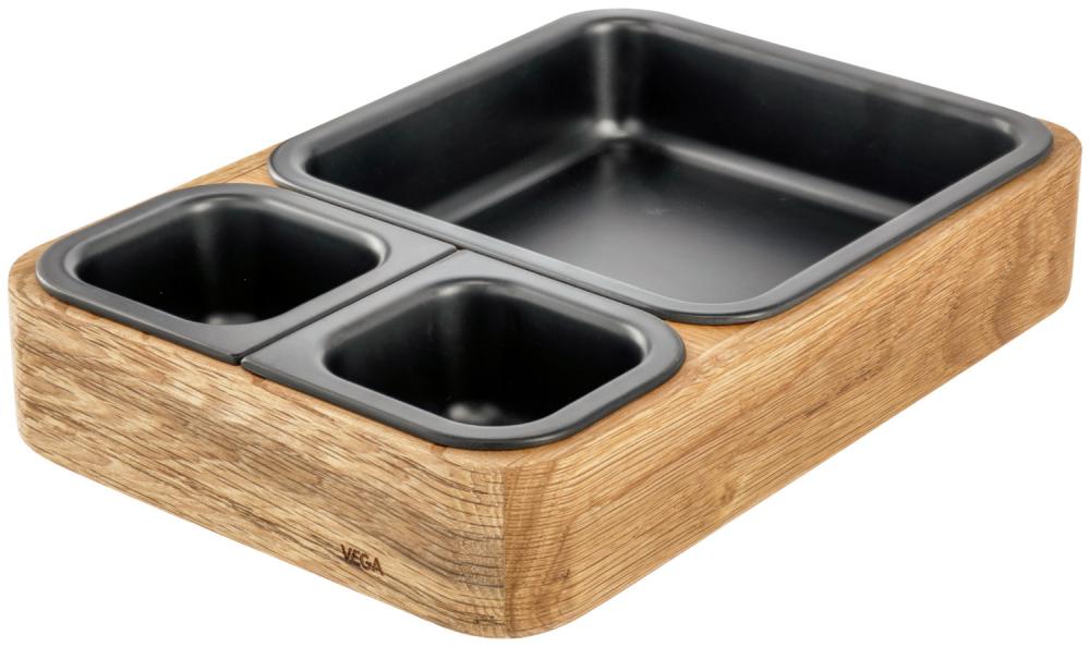 The wooden oak bowl in combination with the melamine inner tray is perfect for your buffet. Various combinations are possible with the matching feet, trays and the cake plate to create a natural and sustainable buffet. The wooden bowls medium and large are provided with pre-drilled holes for the feet at the bottom. The bowls are also perfect for trendy bowls. Stackable. Wooden parts are not suitable for dishwasher.