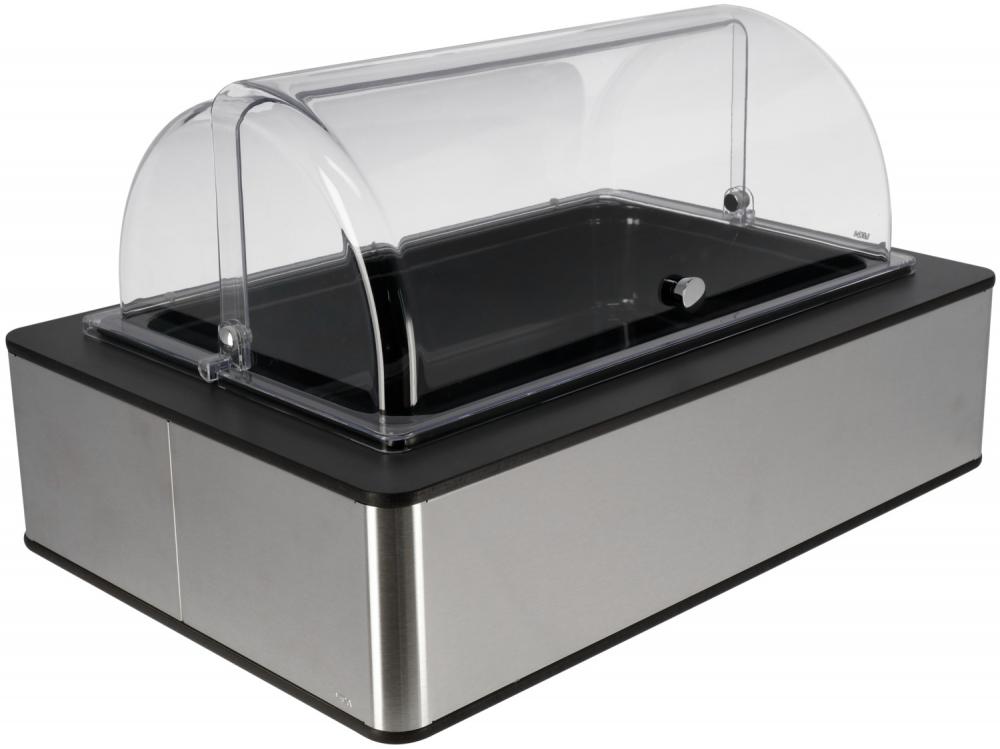 Set se sastoji od buffet kutije visoke izrađene od visokokvalitetnog brušenog 18/10 nehrđajućeg čelika sa laminatnim poklopcem boje antrakita, osnovnog kontejnera izrađenog od visoko kvalitetnog brušenog čelika,kvalitetna plastika sa toplotnom otpornošću do 70°C.