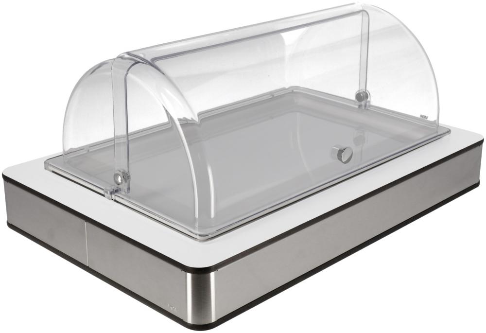 Set se sastoji od ravne kutije za bife napravljene od visokokvalitetnog, brušenog 18/10 nehrđajućeg čelika sa bijelim laminatnim poklopcem, osnovnog kontejnera izrađenog od visokokvalitetne plastike sa toplotnom otpornošću do 70°C