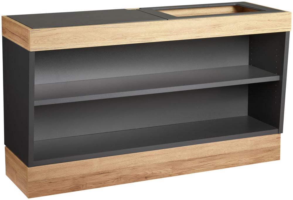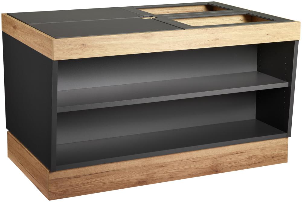 Insert plate with cutout made of high pressure laminate. The plate is suitable for our buffet tables Valinta. In the version with cutout in GN size, you can insert any containers and platters in GN size. With the suitable base containers, cooling of the presentation medium is possible. The cutout of 4x4 cm on one corner serves as a cable feed-through. Robust. Durable. Easy to clean.