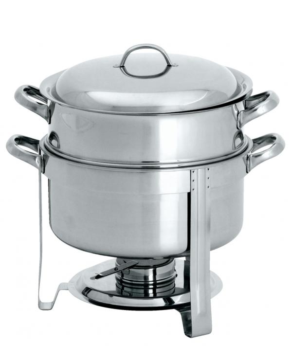 Okrugla posuda za grijanje od hromiranog nerđajućeg čelika 18/0, otporna na rđu. Sa poklopcem, poslužavnik za hranu sa ručkama, okvir sa ručkama i držač za poklopac. Pogodno za mašine za pranje sudova.