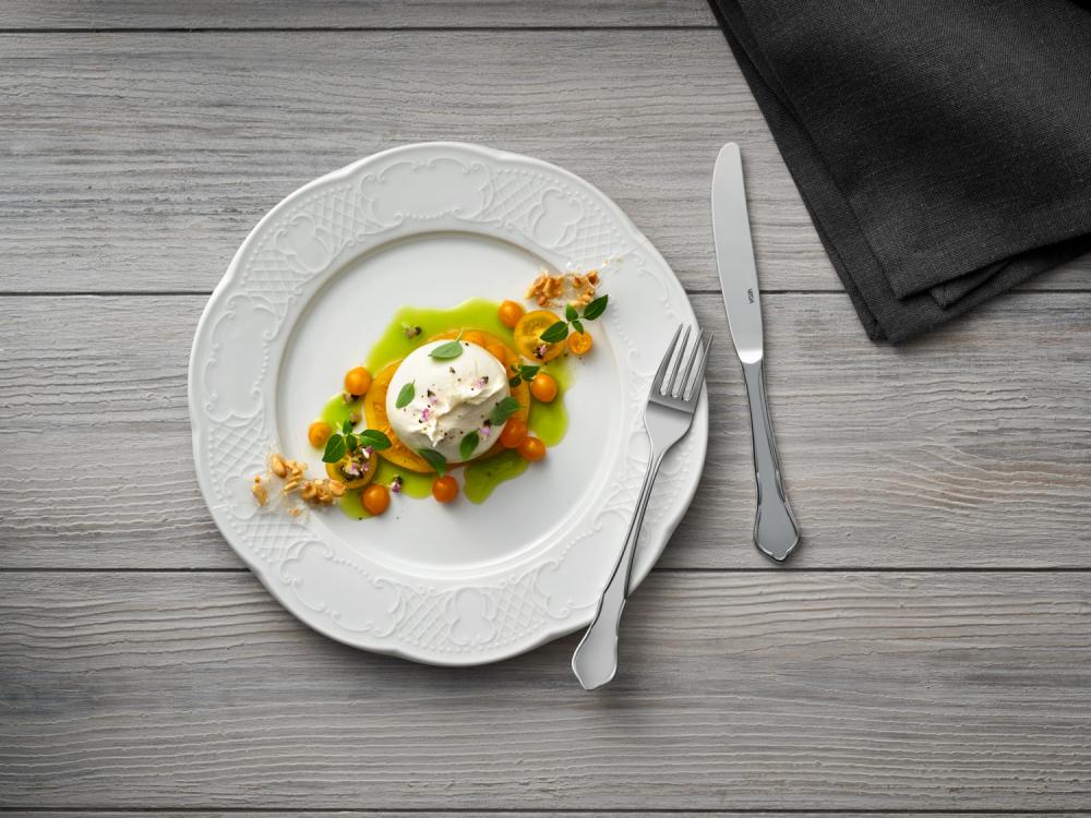Set se sastoji od šest kašika, viljuški, noževa za sto, kašika za kafu i viljuški za kolače. Može se prati u mašini za posuđe.