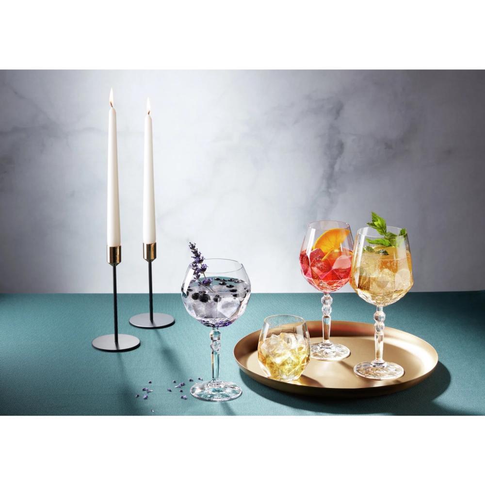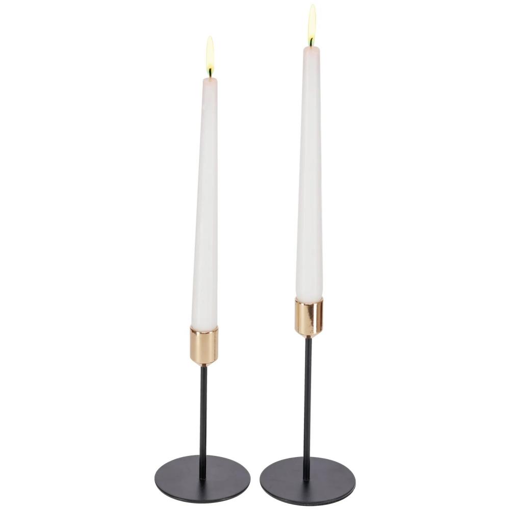 Elegantni svijećnjaci napravljeni od crnog obloženog metala sa zlatnim držačem za svijeće u kompletu od 2. à ̃xH mali: 8x14.5 cm i à ̃xH velika: 8x18 cm