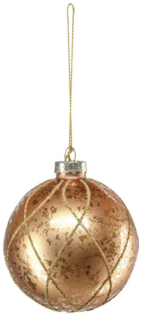 Staklena Božićna kugla sa zlatnim dizajnom.