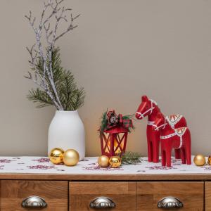 Sa dekoracijom božićne jele. Napravljen od metala i plastike. Pogodno za unutrašnju upotrebu. Isporuka uključujući LED tealight.