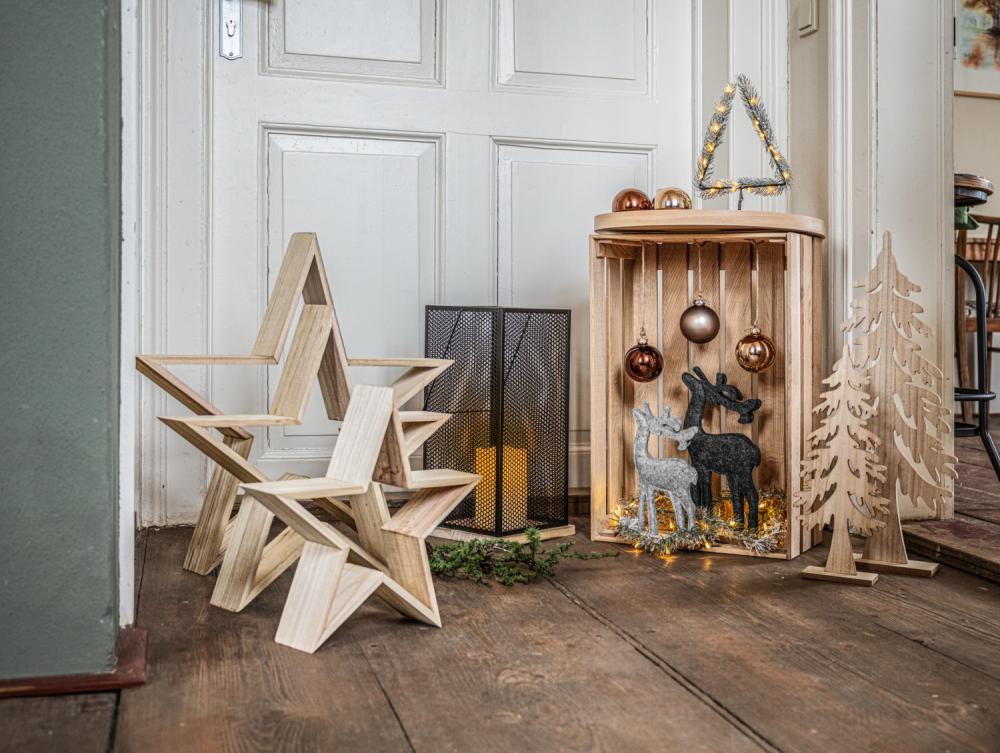 Moderan i jednostavan fenjer napravljen od metala sa drvenom bazom. Za unutrašnju i spoljašnju upotrebu.