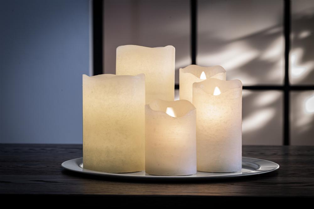 LED originalne voštane svijeće sa treperećim plamenom prirodnog izgleda. Veoma prirodan efekat zbog neravnomjerno "izgorene" gornje ivice. Posebno je bezbjedan sa LED plamenom: bez čađi, ne dimi i može da gori bez nadzora. Sa funkcijom tajmera za rad od 4 i 8 sati. AAA baterije nisu uključene. Materijal: pravi vosak. WEEE-Reg.-Nr. DE47452658