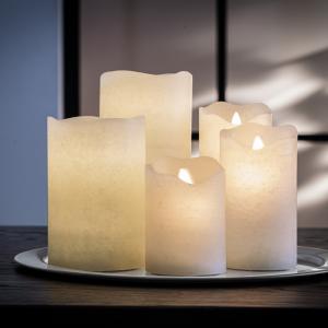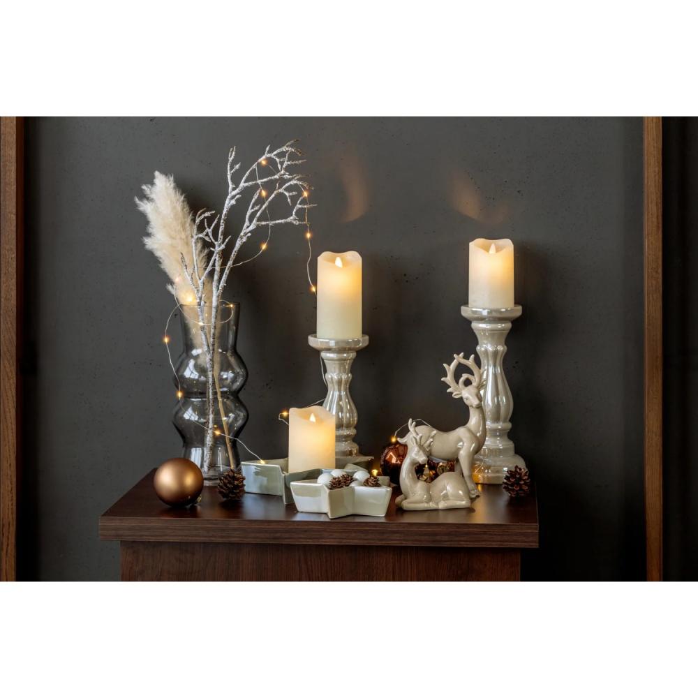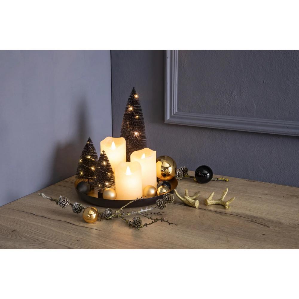 LED prave voštane svijeće u diskretnom metalnom izgledu sa varljivo stvarnim treperećim wickom. Veoma prirodan efekat neravnomerno "izgorelim" gornjim ivicama. Posebno je bezbedan zbog LED plamena: bez čađi, bez dima i može da svetli bez nadzora. Sa funkcijom tajmera za upotrebu od 4 i 8 sati. AAA baterije nisu uključene. Komplet od 3 sa po jednom svijećom u à ̃xH 7.6x10, 7.6x12 i 7.6x15 cm. Materijal: pravi vosak. WEEE-Reg.-Nr. DE47452658