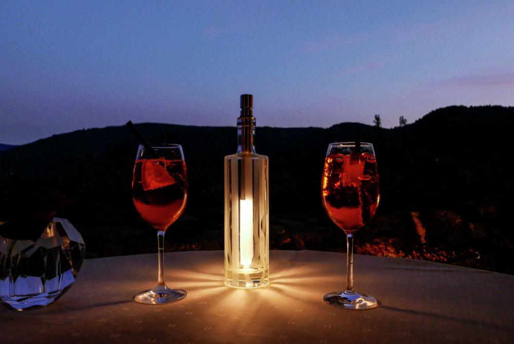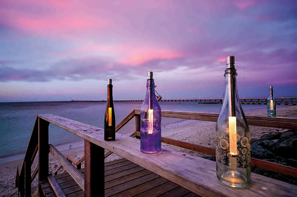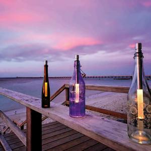 LED svjetlo za flaše, pogodno za sve prazne standardne boce unutrašnjeg prečnika 17-20 mm. Trajanje osvjetljenja cca. 120 sati po kompletu baterija. Otporan na vodu i kišu. 3x standardne AA baterije nisu uključene.