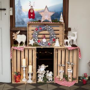 Komplet jelke i zvijezda sa prekrasnim LED osvjetljenjem. Baterije nisu uključene. Zvijezda: 15x2x14 cm, stablo 12x2x14 cm.
