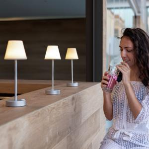 Plastična stolna lampa. Lampa sa mogućnošću zatamnjivanja radi na baterije. Pogodno za unutrašnju i vanjsku upotrebu. Trajanje osvetljenja do 40 sati