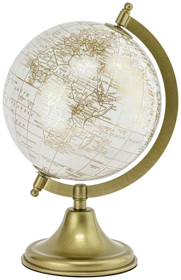 Ukrasni globus od metala i plastike u antiknom dizajnu.