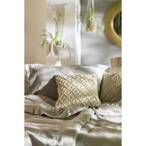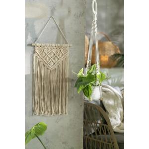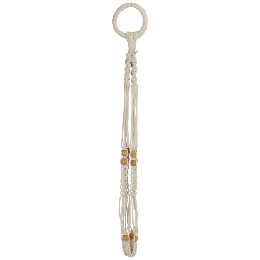 Korpa za vješanje od pamuka u modernom dizajnu sa drvenim ukrasnim kuglicama u macrame stilu. Plantažer saksija nije uključen.