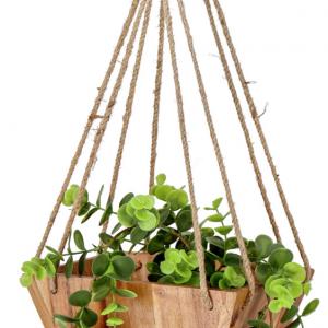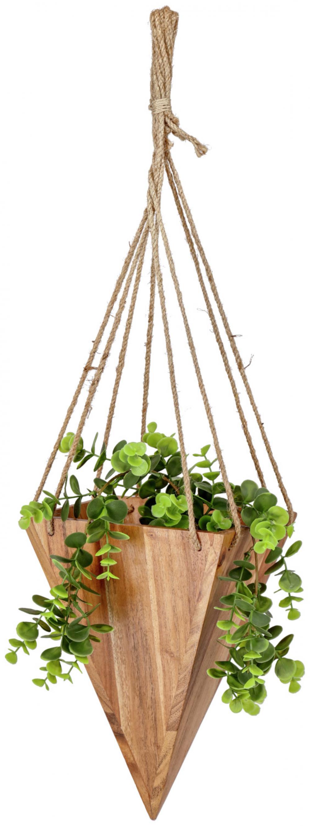 Viseća korpa za vještačke biljke od drveta. Trouglasti oblik.