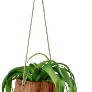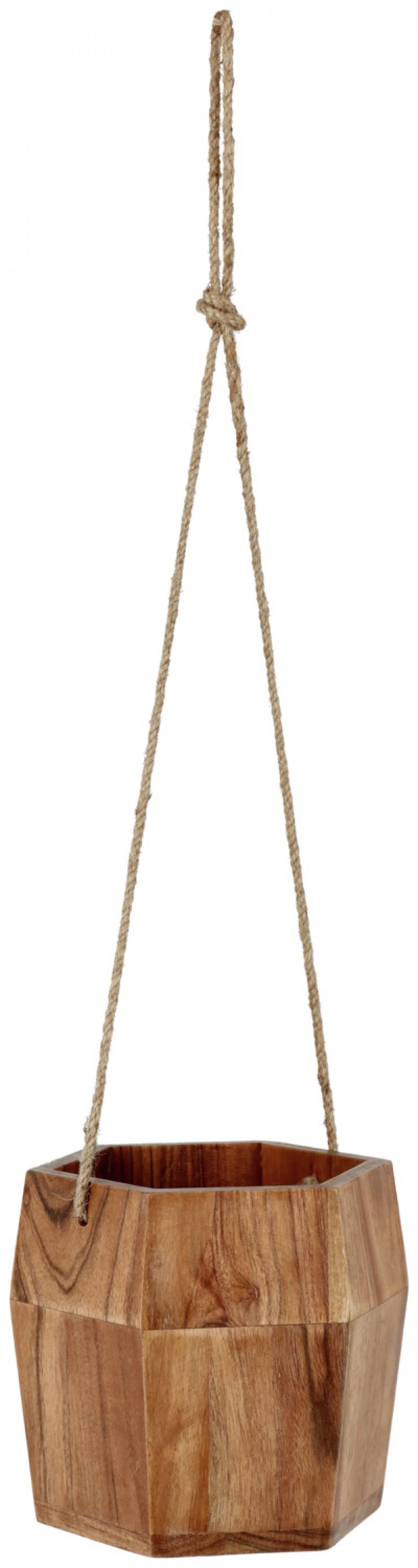 Viseća korpa za vještačke biljke od drveta. Heksagonalni oblik.