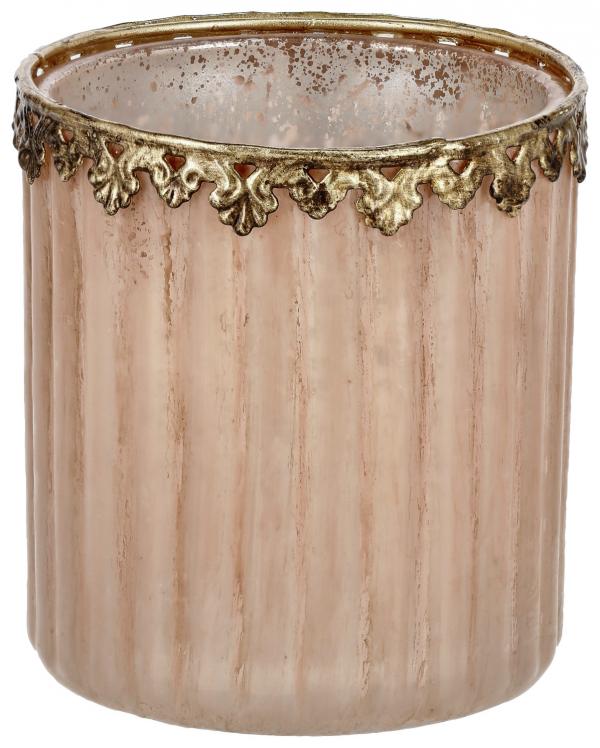 Stakleni držač za čajnu svijeću sa blagim svjetlucanjem i zlatnim rubom. Nije pogodno za mašinu za pranje sudova.