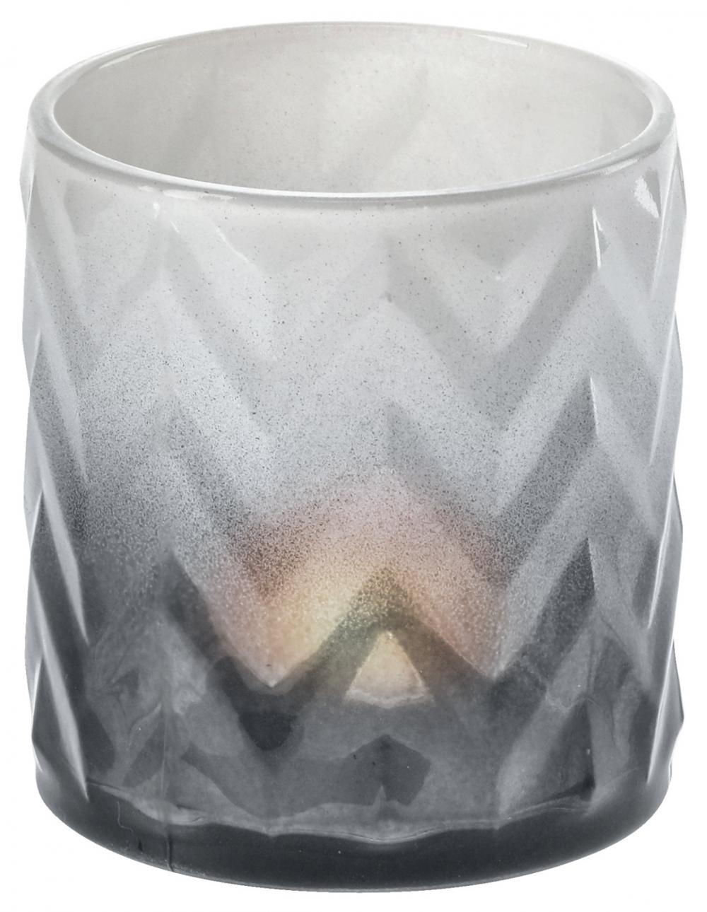 Svijećnjak napravljen od lakiranog stakla sa elegantnim gradijentom boja i reljefastim detaljima.