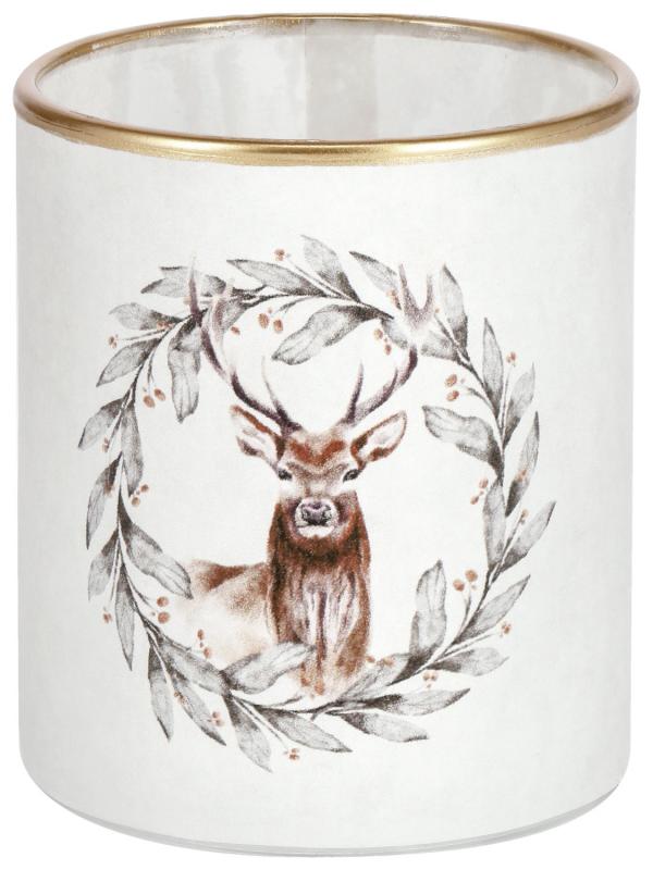 Držač za svijeću sa motivom jelena, od stakla sa papirnim premazom.