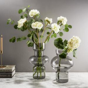 Staklena vaza sa šik dizajnom. Savršen za stvaranje savremenih aranžmana svežeg ili sušenog cveća. Vaza je pogodna za mašine za pranje sudova i dostupna je u stilizovanoj sivoj boji.