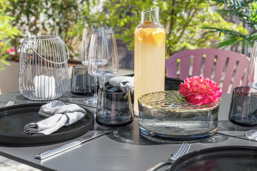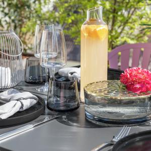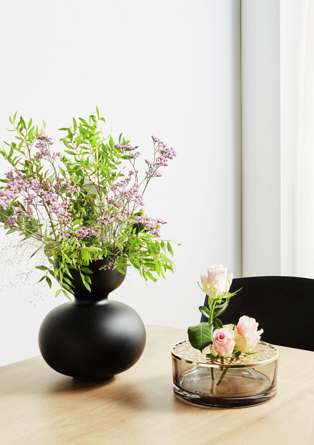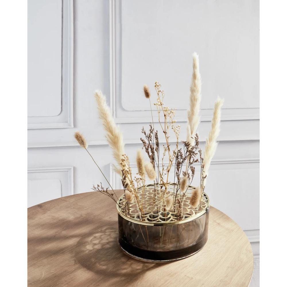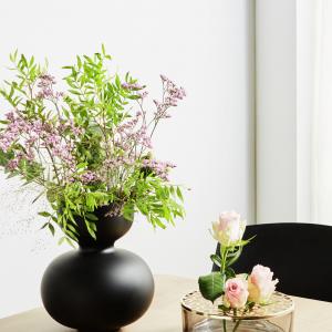 Moderna staklena vaza za cvijetne dekoracije. Napravljena od lakiranog stakla sa metalnim poklopcem. Nije pogodna za mašinu za pranje sudova.