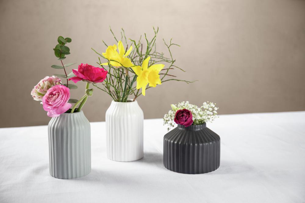 Keramička vaza s trendovskom nabranom teksturom. Gumeni klizači sa donje strane.