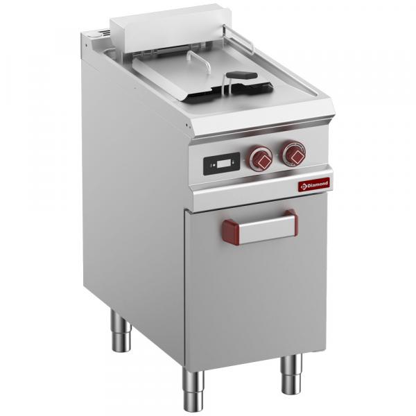 Električno grejanje pomoću oklopnih otpornika od nerđajućeg čelika uronjenih u rezervoar. Podizanje bloka grejnog elementa za lako čišćenje rezervoara, regulacija temperature od 100° do 190°C pomoću termostata, sigurnosni termostat kao standard, prednji pristup za lako održavanje.