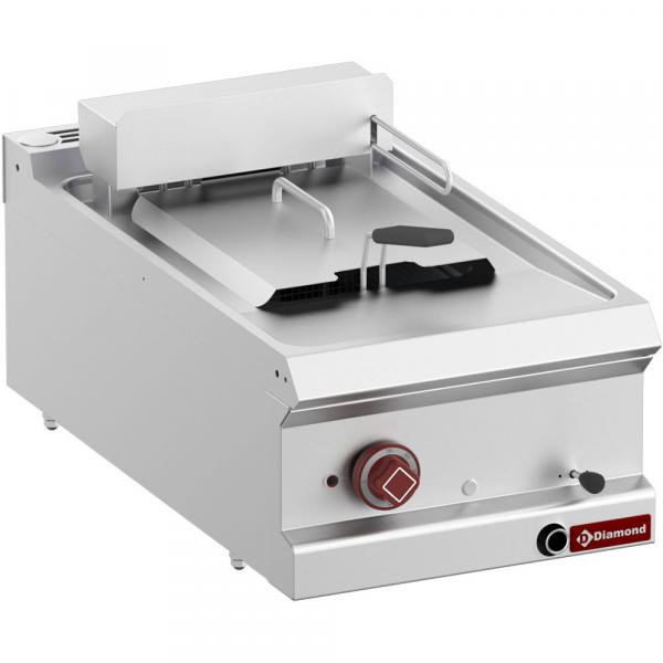 Električno grejanje pomoću oklopnih grejnih elemenata od nerđajućeg čelika uronjenih u posudu. Okretni blok grejnog elementa za lako čišćenje rezervoara, regulacija temperature od 100° do 190°C pomoću termostata, sigurnosni termostat kao standard, prednji pristup za lako održavanje.