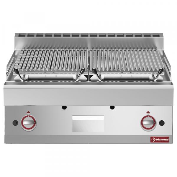 Površina za kuvanje 2x 365x485 mm Isporučuje se sa 2 vreće lavastona (2k 4kg) Roštilj(i) za kuvanje od livenog gvožđa (dvostrani). Podloga od lava kamena od nerđajućeg čelika, velike debljine. Grejanje pomoću gorionika sa stabilizovanim plamenom od nerđajućeg čelika. Regulacija pomoću zaporne slavine, sigurnost sa termoparovima, automatsko osvetljenje pilot lampom i piezoelektrični uređaj. Fioka za oporavak zrna za kuvanje. Podesivi donji niveleri. Napravljen od nerđajućeg čelika AISI 304. Oprema proizvedena po (CE) standardima koji su na snazi.