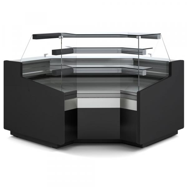 Rashladni pult sa ventilatorom, unutrašnji ugao 90°, sa niskim staklom, 3 strane - Crna