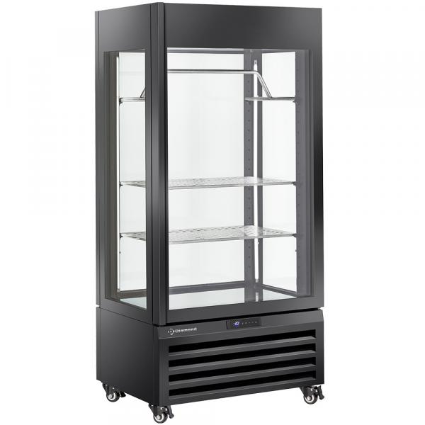 Vitrina za meso sa staklom sa 4 strane, 600L, 2 police i bar za meso, Crna