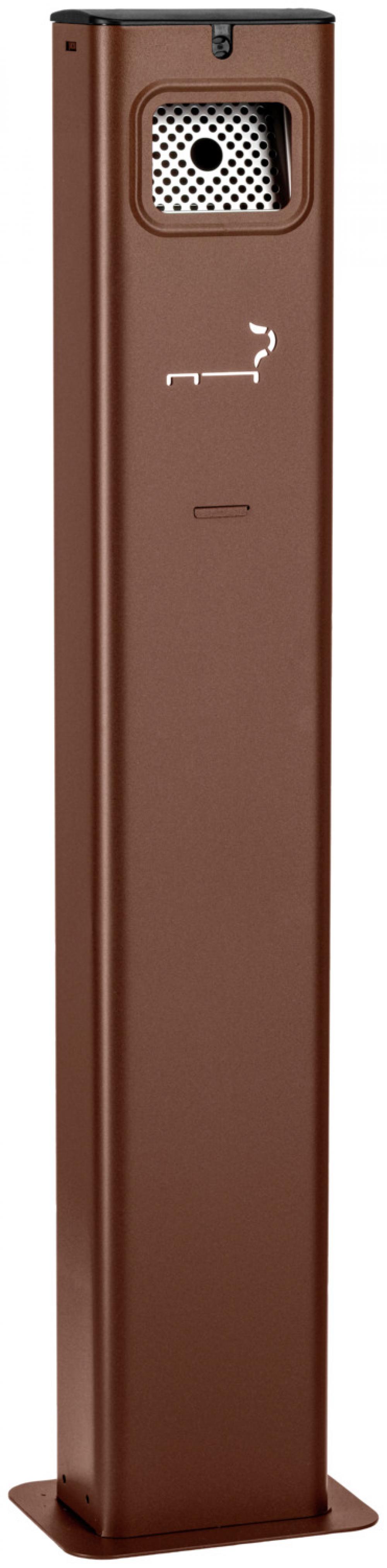 Stona pepljara Dorsale. Jednostavna i neupadljiva pepeljara napravljena od pocinkovanog, praškastog čelika. Za pražnjenje, insert se može ukloniti na vrhu. Pogodan za spoljašnju upotrebu, sa zaključanim poklopcem i vandalskim pričvršćivanjem. Kapacitet 2.5l, dostupan u antracit i bakar boji, uključujući fiksni materijal i ključ.