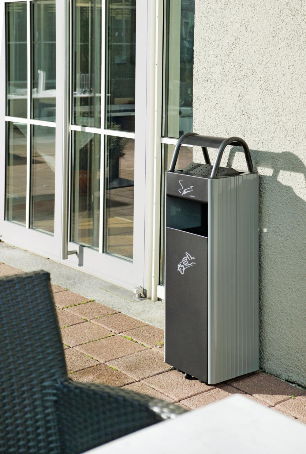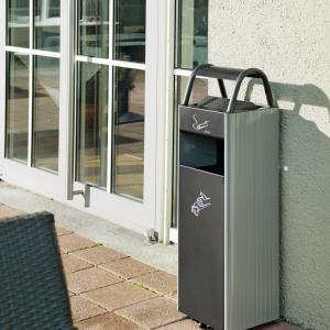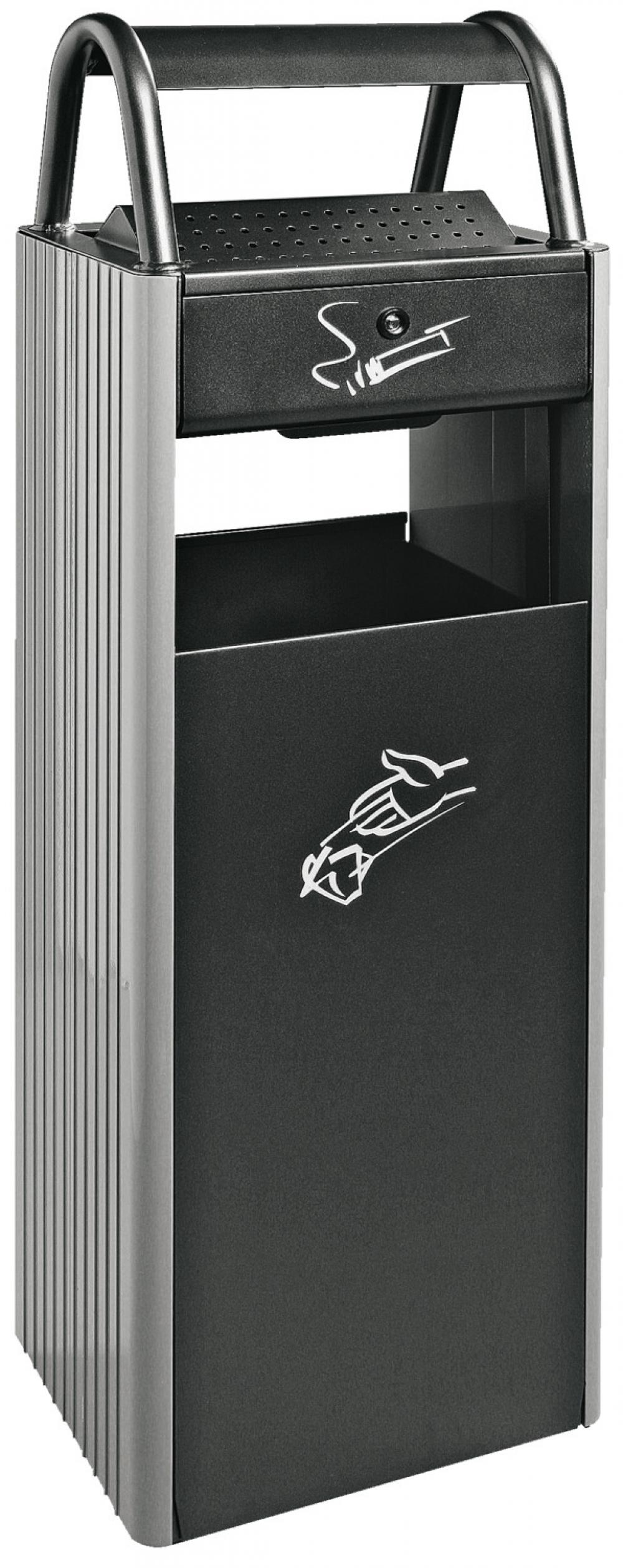 Sa kišnim poklopcem od pocinkovanog čelika, sivim aluminijumskim bočnim zidovima i kantom za otpatke. Lako i brzo pražnjenje trouglastim ključem. Zapremina: 30 l, pepeljara: 5 l.