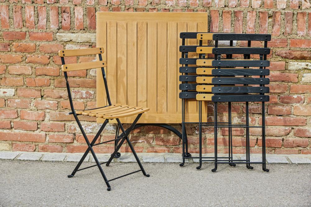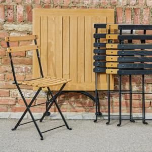 Sklopiva pivska baštenska stolica od pocinčanog i praškasto lakiranog čeličnog okvira, sjedište i naslon od lakiranog kestenovog drveta. Uključuje plastične klizače koji su nježni prema podu. Sklopivi, otporni na vremenske prilike i izuzetno robusni. Dimenzije u sklopljenom stanju: 41x8x96 cm (ŠxDxV). Pogodno za upotrebu na otvorenom. Isporuka je sastavljena. Istovremeno naručite odgovarajući sto.