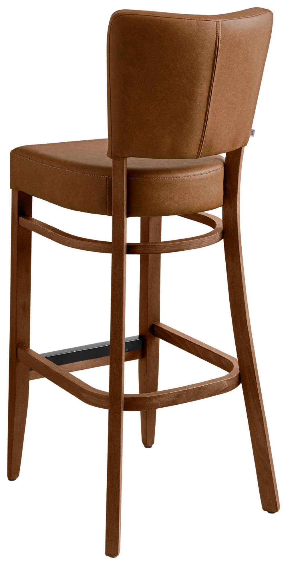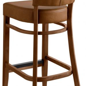 Okvir barskih stolica i stolica izrađena je od čvrstog bukovog drveta, obojena je duvanom i lakirana. Imitacija kože.