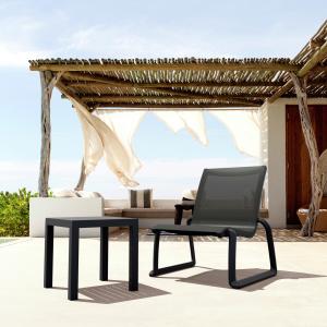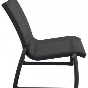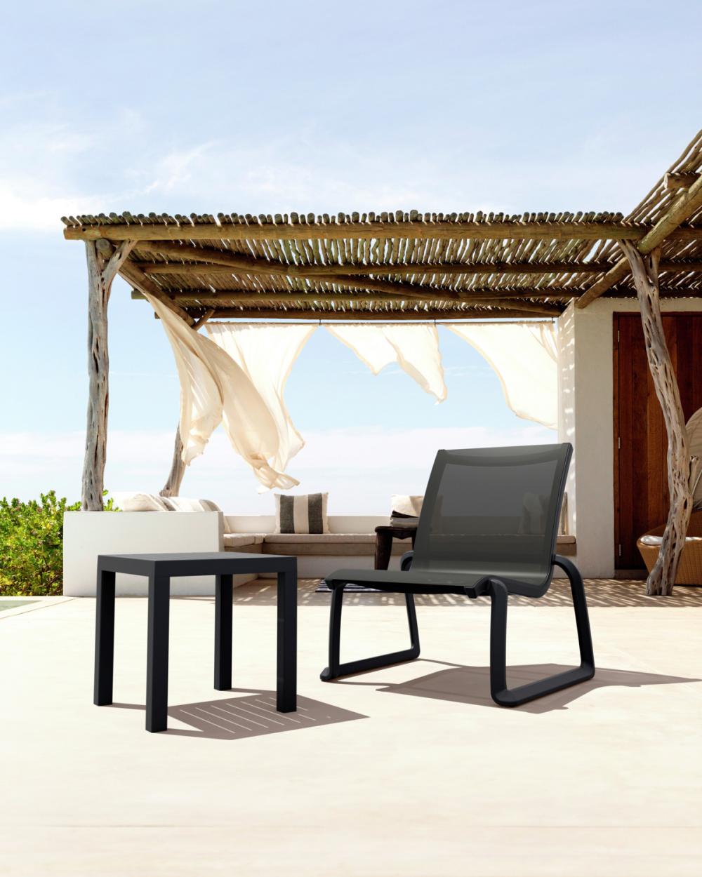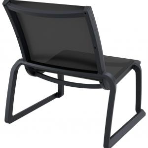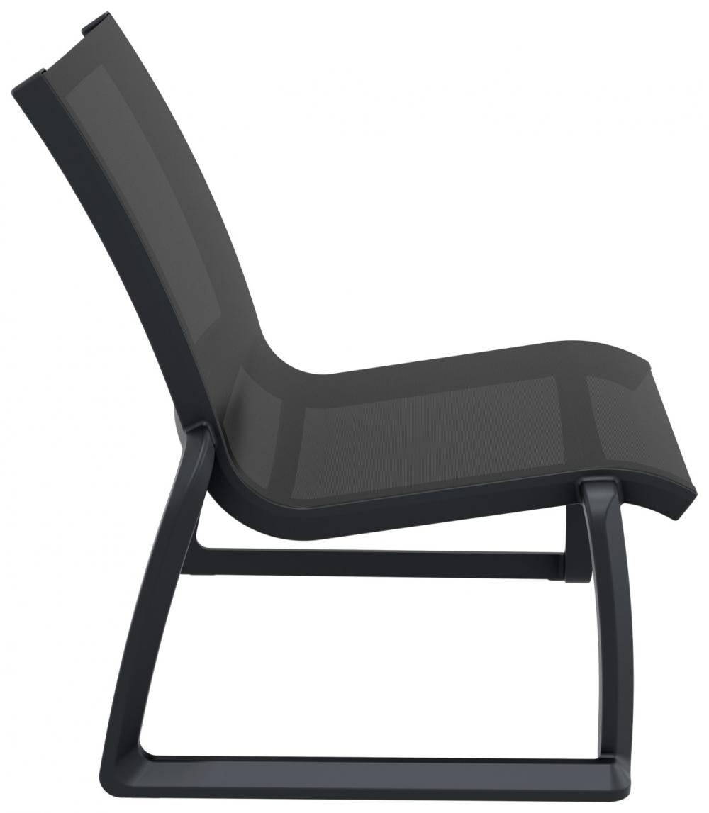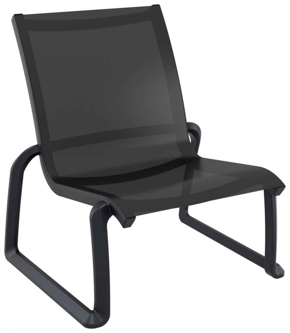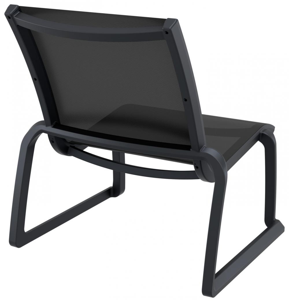 Armchair with a plastic frame and textile cover. Stackable, weatherproof and UV-resistant. Suitable for outdoor use. Delivered assembled.