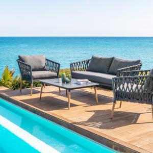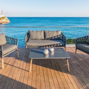 Inovativni kvadratni vanjski bočni stol sa aluminijumskim stolnim nogama sa pravim drvenim izgledom. Stoni vrh napravljen od otporne daske, mješavine drvenih čipova i polietilenskih smola. Dodatni višeslojni premaz čini površinu izuzetno čvrstom i otpornom na vremenske uslove. Plastični jedrilice na nogama za zaštitu poda. Takođe je pogodan za unutrašnju upotrebu. Izuzetno lak za sastavljanje. Materijal za stolnu nogu: visokokvalitetni aluminijum obložen prahom. Materijal za stol: Duraboard. Laka za održavanje! Otporan na vremenske uslove! UV otporan!