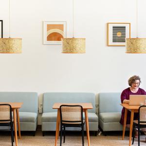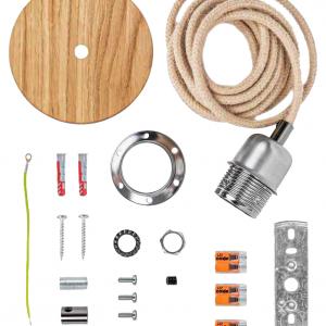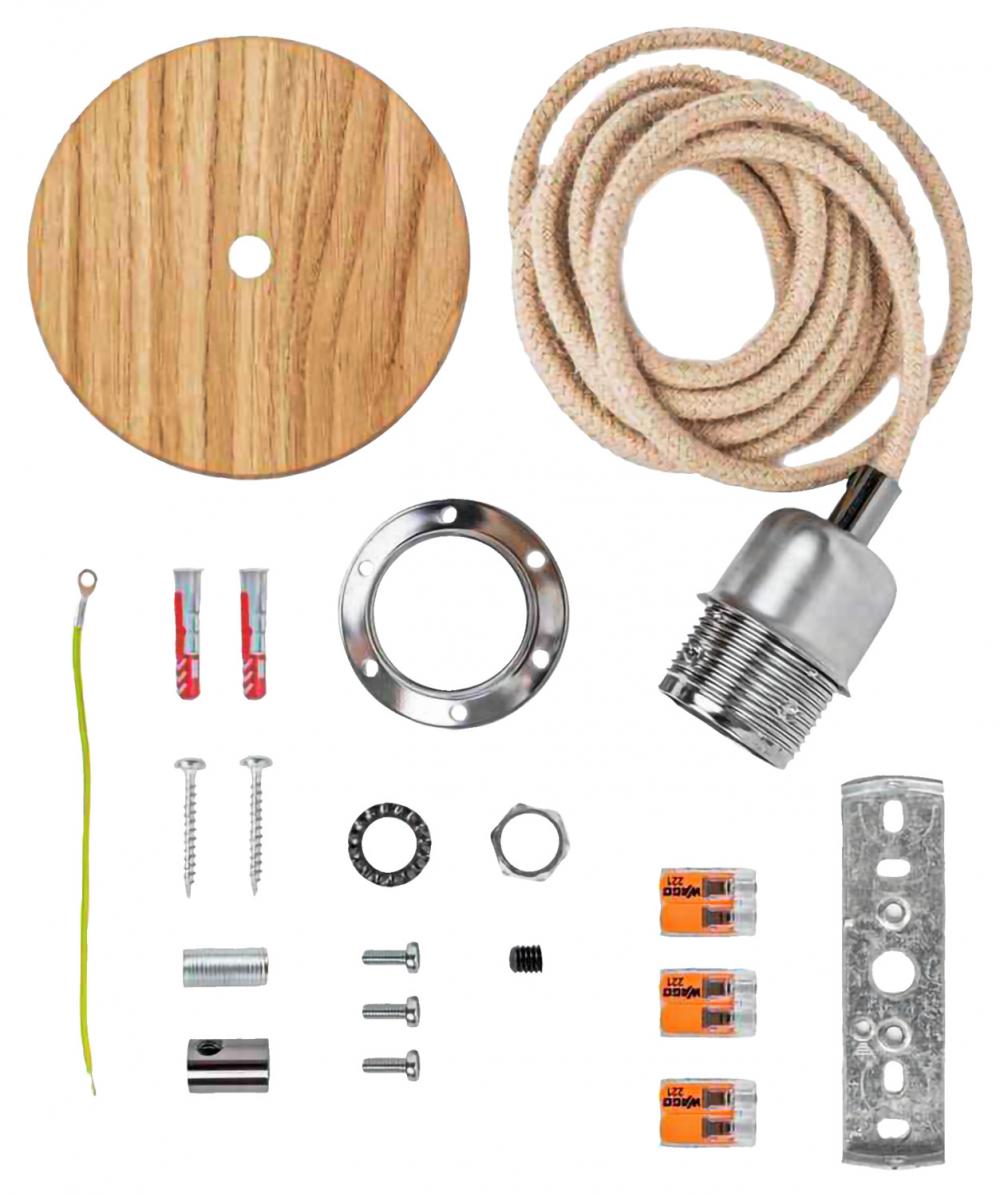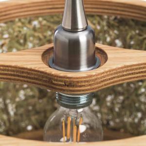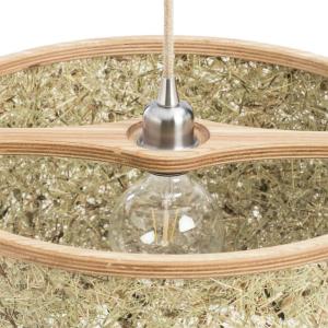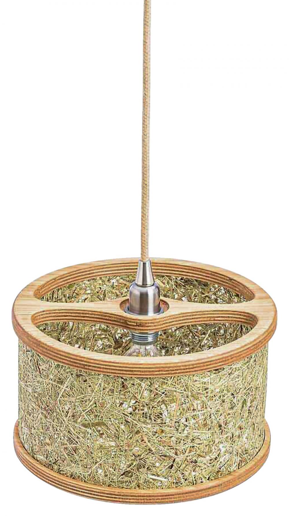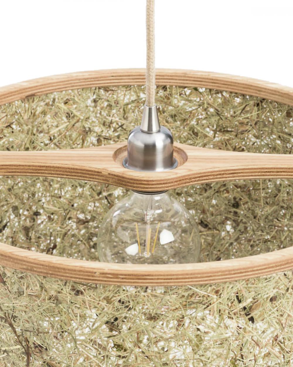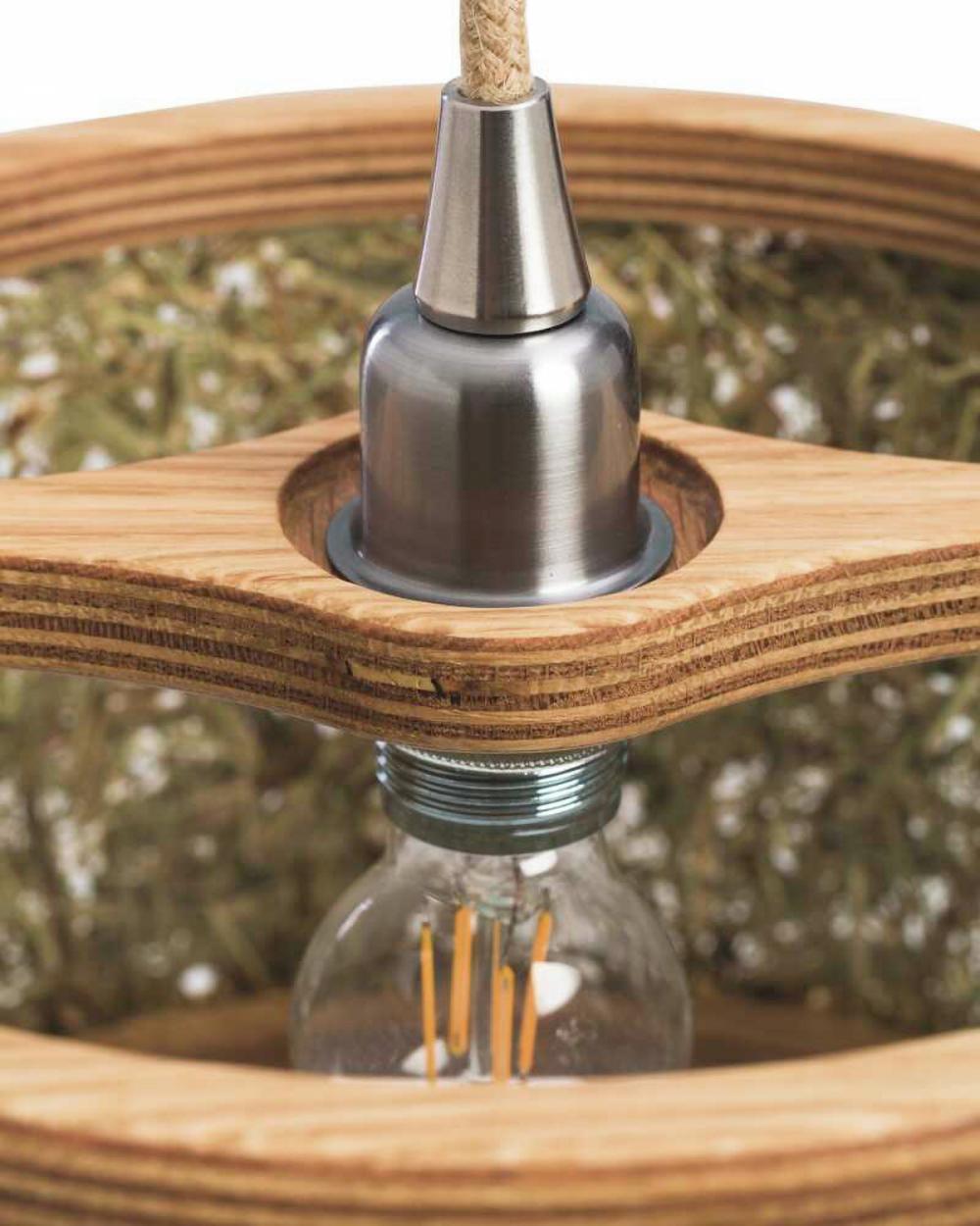 Lampa je izrađena od hrastovine i čistog alpskog sijena sa kablovima od jutenih vlakana.