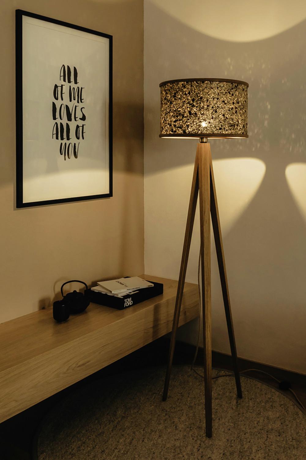Ručno rađena podna lampa od prirodnih materijala, abažur od čistog sijena, tronožac od hrastovine i kabl od jutenih vlakana. Tokom posebnog procesa proizvodnje u Austriji, materijali se obrađuju sa velikom zanatom, otkrivajući organske strukture mirisnih alpskih trava. Čisto alpsko sijeno osigurava odlično, nježno prigušivanje izvora svjetlosti. Svaka lampa je unikatna. Dimenzije: Abažur Ø 45 cm, visina 27 cm, uključuje se i isključuje nožnim prekidačem, isporuka ne uključuje rasvjetu.
