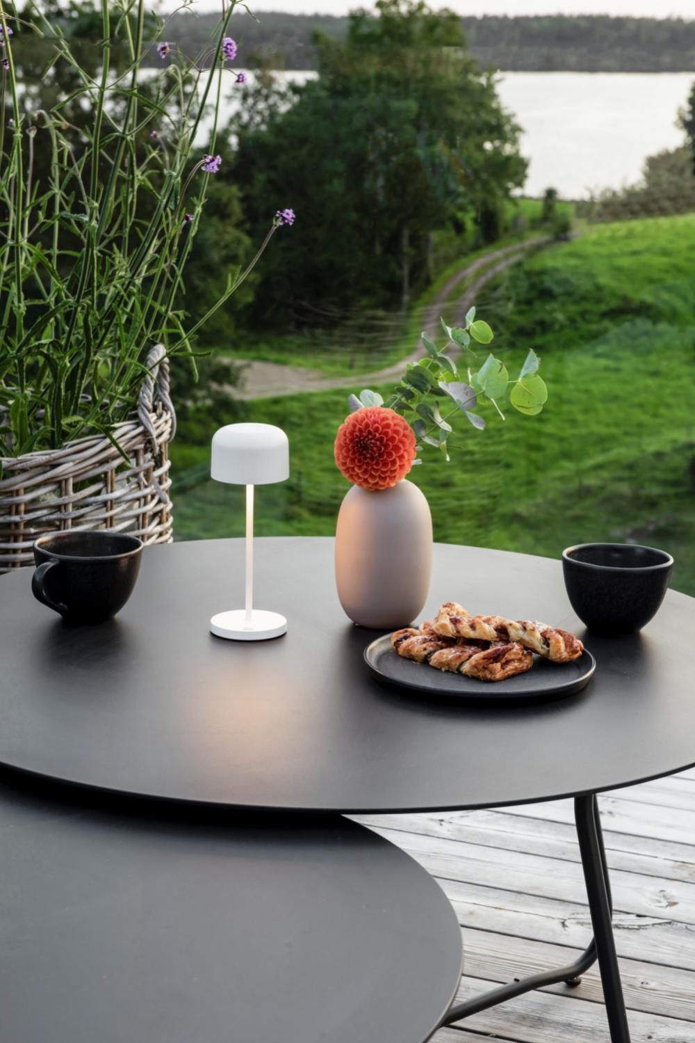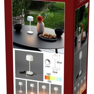 Add stylish and discreet lighting to your home, restaurant or hotel room, indoors or outdoors, with the Lille Mini table lamp in elegant black. With a compact height of just 20 cm, it blends discreetly and tastefully onto tables - perfect for use in restaurants, on tables or in the garden. The light is emitted below eye level, preventing glare. Thanks to the infinitely dimmable function, you can adjust the light intensity to suit your mood. Main features: Weatherproof to IP54 - suitable for outdoor use Only 20 cm high - ideal for use on tables without dominating them Light below eye level - glare-free light for a pleasant atmosphere Infinitely dimmable - individual light control for every mood Electrical data - power supply: 230 V, 50 Hz, light source: LED, replaceable, output: approx. 4-6 watts, light colour: warm white (approx. 2200-2700K) Discreet design - blends in unobtrusively, provides pleasant light High-quality workmanship - durable and robust Versatile use - perfect for restaurants, gardens, sleeping areas or at home Opt for high-quality, stylish lighting that blends harmoniously into any environment. The Lille Mini is the ideal choice for discreet, glare-free light that adapts flexibly to your needs and creates a pleasant atmosphere. Charging cable included in the package.