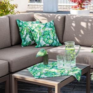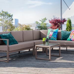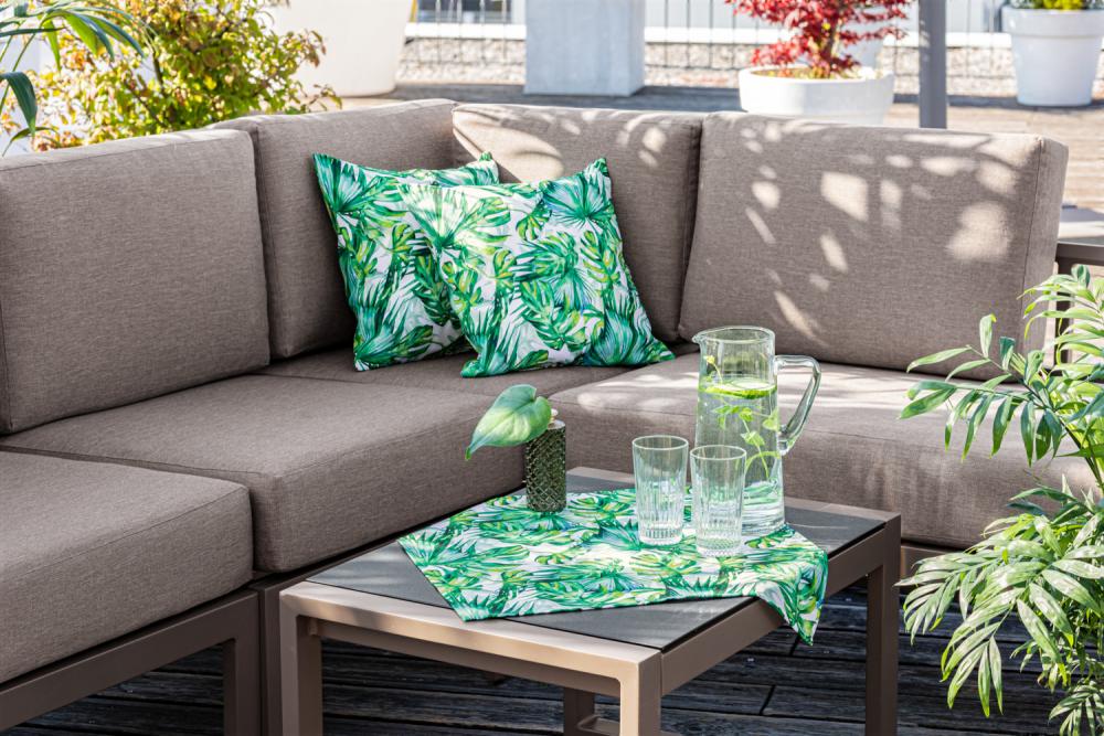 Frame material: hard-wearing aluminum, powder-coated surface. Cushion material: high-quality, natural-looking olivine fabric (synthetic fiber). Water-repellent! Lightproof! UV-resistant and weatherproof! |
