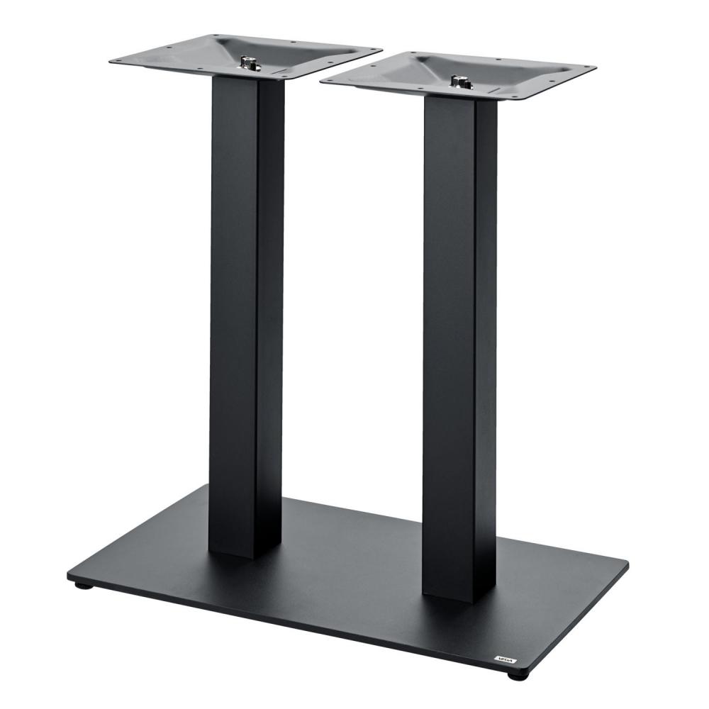 Stubovi od crnog čelika sa kvadratnom bazom od livenog gvožđa bezbjedno drže stolove i imaju visoku stabilnost. Pogodno za unutrašnju upotrebu.