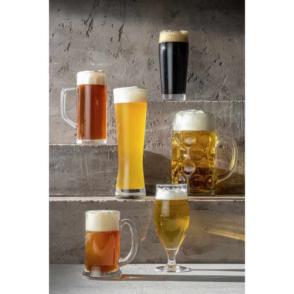 Moderna čaša za pivo sa linijom za punjenje. Materijal: staklo. Može se prati u mašini za suđe.