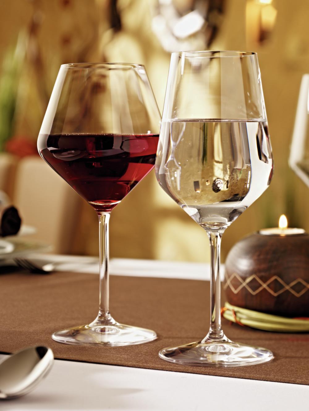 Set od šest čaša za crveno vino i šest čaša za roze vino od kristalnog stakla. Mašina za pranje sudova bezbedno.