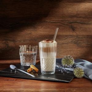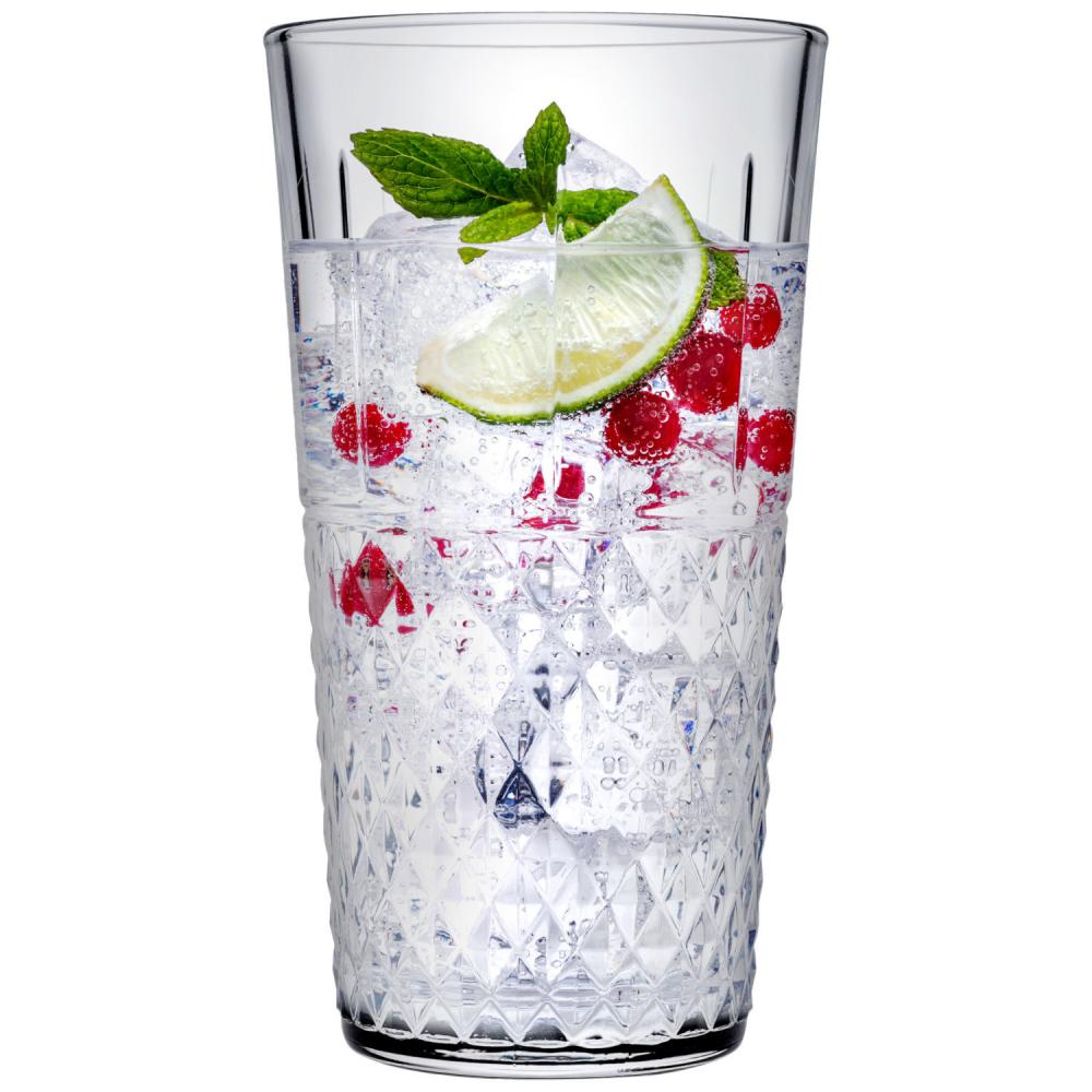 Čaša za koktele napravljena od kaljenog stakla sa atraktivnom strukturom spolja. Može se prati u mašini za suđe.