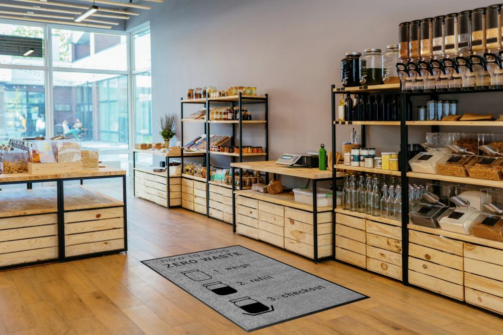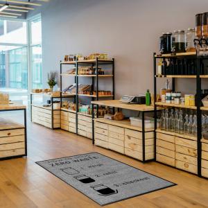 Otirač od najlona visokog uvijanja za razne primjene u maloprodaji. Grafička štampa sa održivim dizajnom bez otpada. Zadnja strana prostirke od neklizajuće nitrilne gume debljine 0,9 mm. Upijanje tečnosti do 2 l po m² i upijanje prljavštine do 0,5 kg po m². Može se prati na 60 °C. Otporno na plamen prema DIN EN 13501 Cfl-s1 (B1). Ostali fotorealistični motivi u štampi visoke rezolucije dostupni su na zahtjev.