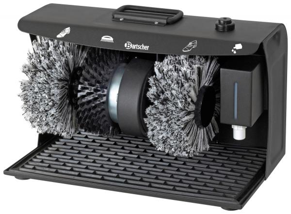 Ova mašina za čišćenje cipela opremljena je ugrađenim dozatorom kreme za cipele i četkom za čišćenje i poliranje. Upravljanje pritiskom na dugme - sa 3 tihe rotacione četke 2 četke za poliranje od terilena (poliester), za svetle ili tamne cipele 1 četka za čišćenje - za grubu prljavštinu Dozator kreme za cipele sa kuglastim ventilom za 100 ml tečne kreme za cipele, nenapunjen 1 ručka za nošenje na vrhu uređaja 2 bočna udubljenja za držanje Podloga za sakupljanje prljavštine za jednostavno čišćenje Motor koji ne treba održavati Priključeno opterećenje: 120 W / 230 V Uključuje lijevak za punjenje - za lako punjenje dozatora kreme za cipele.