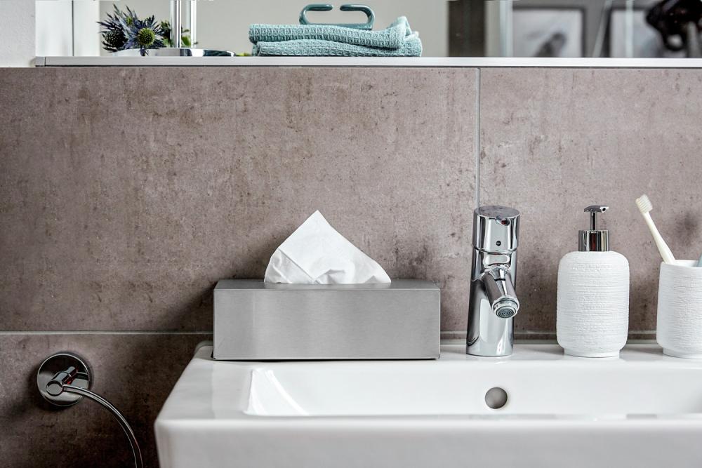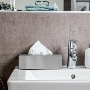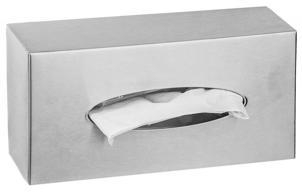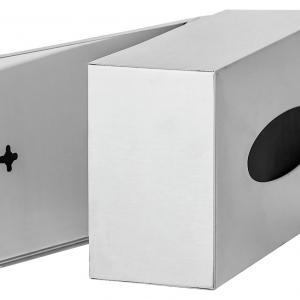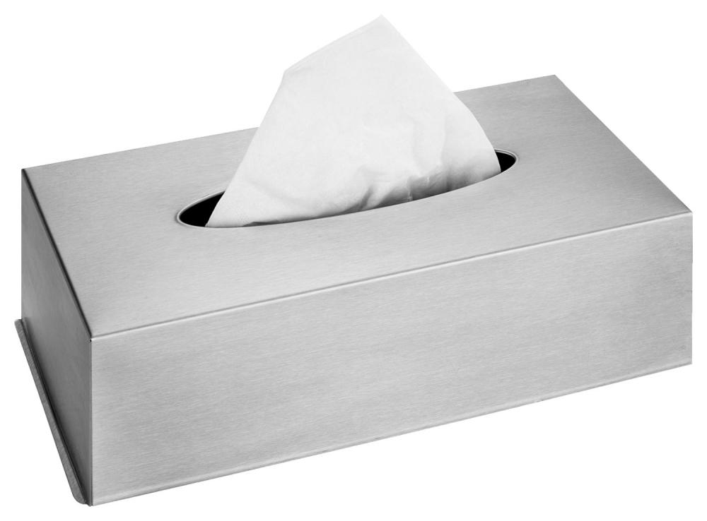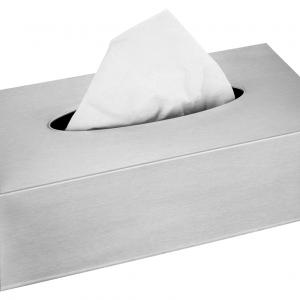 Kutija za maramice napravljena od nerđajućeg čelika koji je završen od satena može se postaviti na ravnu površinu ili montirati na zid. Kutija od nehrđajućeg čelika nudi efikasnu i dekorativnu zaštitu za standardne pravougaone kutije tkiva. Sa 4 anti-slip u bazi za sigurno pozicioniranje. Isporučuje se sa montažnim setom, ali ne uključuje maramice. Odgovarajući proizvod: naručite 10029237.