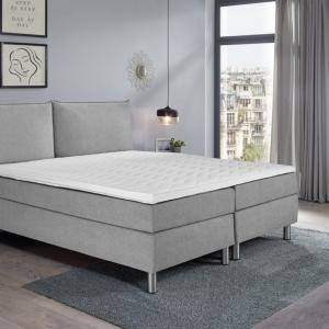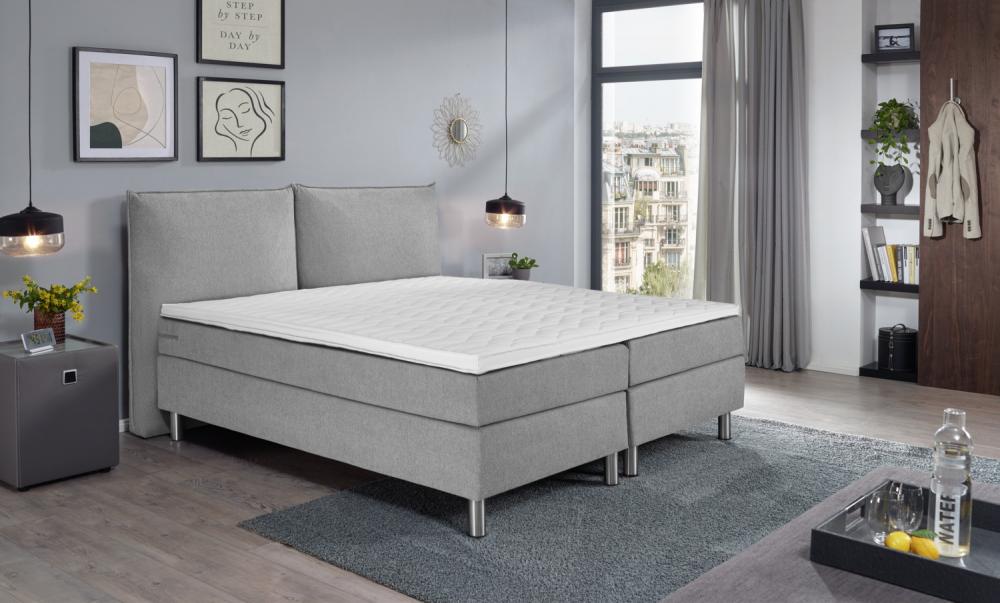 Proljetni krevet u praktičnom kompletu. Kutija sa bonnell spring core. Čvrsti drveni okvir. 7 zona džepnog proljetnog dušeka. Hladna pjena topper za udoban san. Uzglavlje sa podlogom. Srebrna čelična stopala. Visina za ulazak u krevet: 60 cm. Visina: Stopala 16 cm + kutija 22 cm + dušek 17 cm + topper 5 cm; Ukupna visina: 60 cm. Sa presvlakama tkanine. Dostupno kao jednokrevetni ili dupli krevet. Isporučuje se sa povezanim elementima. Dostupan u sivoj, svijetlosivoj i taupe boji.