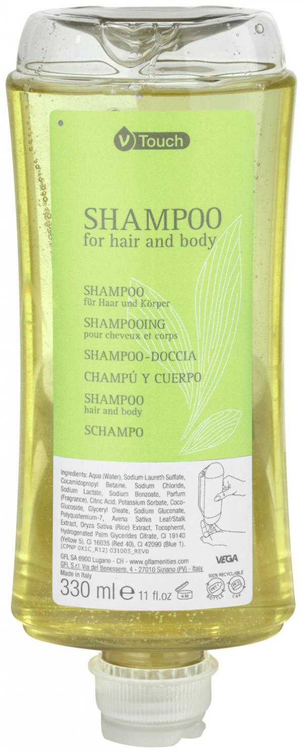 V-Touch Mineral 2in1 šampon i gel za tuširanje će šarmirati vaše goste harmoničnom svežinom. Šampon za njegu u praktičnoj boci za doziranje može se lako prikačiti na odgovarajući sistem dozatora i može se ukloniti laganim pritiskom. Blago čisti tijelo i kosu i pogodan je za sve tipove kose i kože. Odiše delikatnim mirisom citrusa i izuzetnih cvetova. Boca ima moderan dizajn i uklapa se u svaki ambijent. *